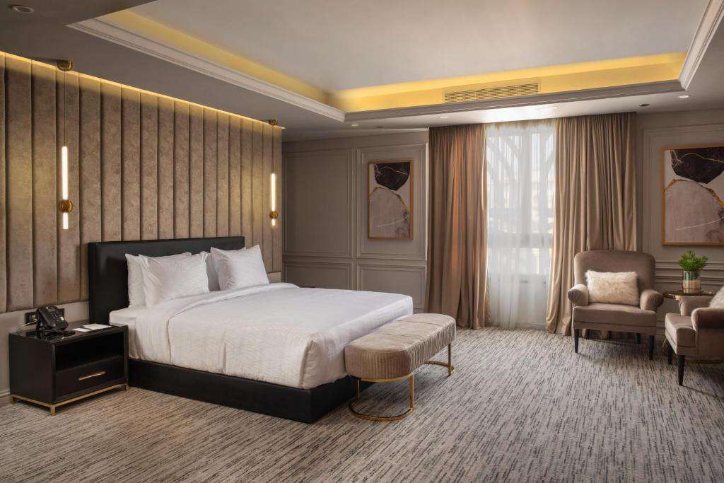 كما تحتوي الغرف على ثلاجة صغيرة وميني بار مجهز، بالإضافة إلى ماكينة لصنع القهوة والشاي لتلبية احتياجاتك في أي وقت. وبالإضافة إلى ذلك، ستجد زجاجات مياه مجانية، ومجموعة من مستلزمات الحمام الفاخرة، وبياضات أسرّة ومناشف مريحة، مما يضمن لك إقامة مريحة وممتعة .