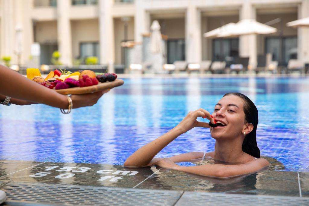 كما يوفر الفندق بارًا أنيقًا يقدم مجموعة متنوعة من المشروبات المنعشة، مما يجعله المكان المثالي للاسترخاء بعد يوم حافل بالاستكشاف. ولمن يبحثون عن الاسترخاء التام، يمكنهم الاستمتاع بخدمات السبا المتكاملة، بما في ذلك جلسات المساج، وحوض الاستحمام الساخن، وغرف الساونا والبخار، مما يوفر لهم تجربة تجديد ونشاط لا مثيل لها .